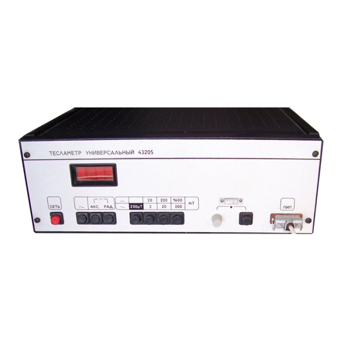 Тесламетр 43205 универсальный (в дальнейшем прибор) предназначен для измерений:радиальной составляющей индукции постоянного магнитного поля и среднеквадратического значения синусоидальной формы переменного магнитного поля с помощью первичного преобразователя толщиной не более 0,95 мм; осевой составляющей индукции постоянного магнитного поля с помощью первичного преобразователя диаметром 6 мм.