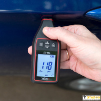 Устройство оснащено большим дисплеем с диагональю 2 дюйма для удобного считывания результатов измерений. Изображение на экране поворачивается в зависимости от положения прибора. Это обеспечивает удобство при измерении поверхностей, таких как корпус автомобиля, в различных плоскостях.