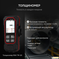 Толщиномер RGK TM-20 представляет собой портативный прибор моноблочного типа с автономным питанием, который позволяет проверять неразрушающим методом качество нетокопроводящих защитных и декоративных покрытий, нанесенных на металлические изделия. Измеритель обеспечивает определение толщины поверхностного слоя в диапазоне от 0,1 до 2999 мкм, как на черных, так и на цветных металлах, работая по принципу магнитного и вихретокового контроля, благодаря чему обеспечивается его универсальность. За счет компактного исполнения инструмент подходит для измерений в труднодоступных местах, в том числе на поверхностях с выпуклостями до 5 мм и вогнутостями до 30 мм.