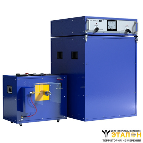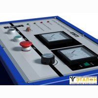 Напряжение питания через автоматический выключатель поступает на понижающий трансформатор (для питания цепей управления и измерения) и на автотрансформатор, на котором установлен концевой выключатель, не позволяющий включить высокое напряжение «толчком». Включение высокого напряжения производится нажатием кнопки «ПУСК», после чего, при замкнутых контактах блокировки на разъеме XS2 и внешней блокировки, регулируемое напряжение с автотрансформатора поступает на источник испытательного напряжения и включается индикация «ВЫСОКОЕ НАПРЯЖЕНИЕ». Отключение высокого напряжения производится нажатием кнопки «СТОП». Измерение выходного напряжения осуществляется измерительной системой. Измерение тока осуществляется встроенным миллиамперметром.