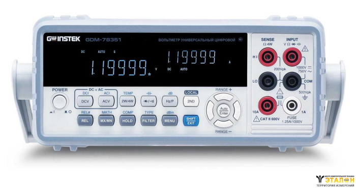 | Особенности | Двухстрочный дисплей, одновременное измерение 2-х различных параметров. Функции математики (MX+B, 1/X, %), сравнение (comp), макс/мин, относит. измерения (rel), dB/ dBm. |