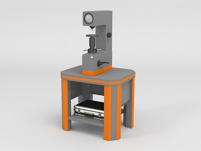 В стандартный комплект поставки твердомера входят два вида инденторов (стальной шариковый - диаметром 1,588 мм и алмазный конус с углом при вершине 120 гр.), предметные столы: плоские (большой и малый) и V-образный, стандартизированные меры твердости.