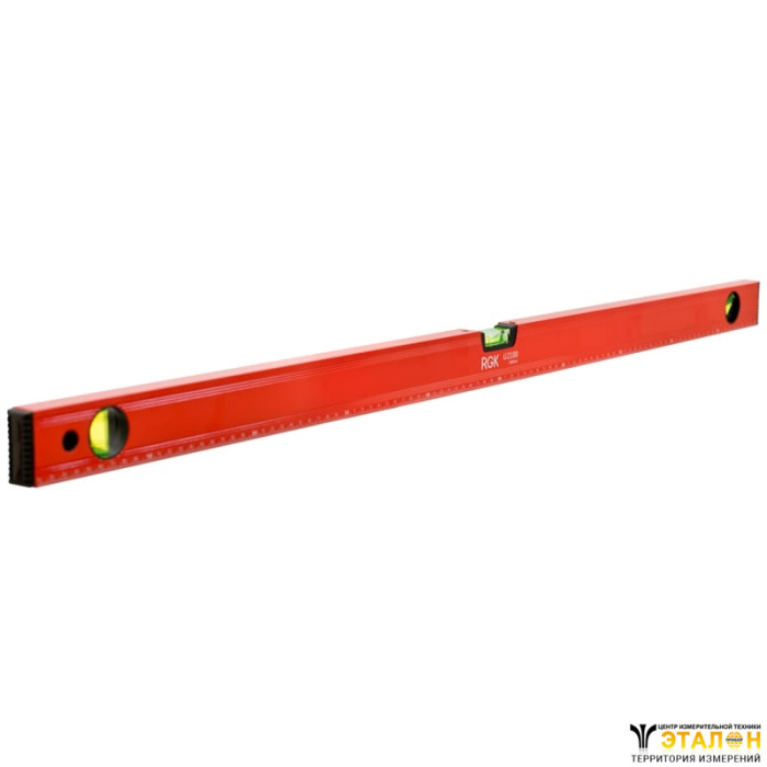 Линейка с ценой деления шкалы 1 мм сделает удобной разметку поверхностей. Подписи и отметки шкалы белого цвета на строительном уровне RGK U2100 выполнены методом гравировки и не истираются при контакте с такими поверхностями, как бетон или дерево.