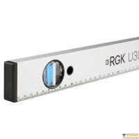Прямоугольный корпус строительного уровня RGK U3200 изготовлен методом экструзии в формате из алюминиевого профиля толщиной 1 мм. За счет высокого качества исполнения и строгих допусков на производстве в качестве опорной поверхности можно использовать любую плоскость. Измерительная шкала с миллиметровыми делениями, начало отсчета которой совпадает с краем торцевой заглушки, может применяться для замеров и разметки, за счет чего специалист может брать с собой меньше инструментов.