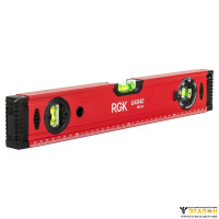 Строительный уровень RGK U4040 длиной 40 сантиметров оснащен магнитом для крепления на металлических поверхностях, чтобы освободить руки при проведении разметки. Поворотная ампула поможет контролировать наклонные поверхности под углом от 0° до 90°.