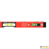 Линейка с ценой деления шкалы 1 мм сделает удобной разметку поверхностей. Подписи и отметки шкалы белого цвета на строительном уровне RGK U7100 выполнены методом гравировки и не истираются при контакте с такими поверхностями, как бетон или дерево.