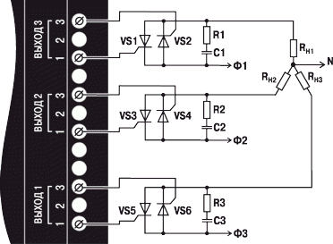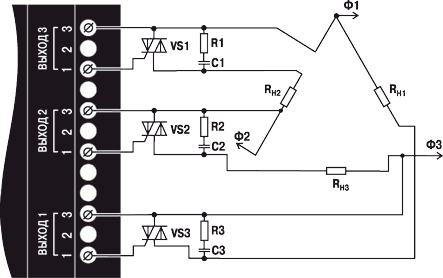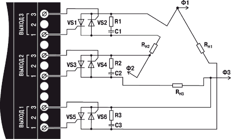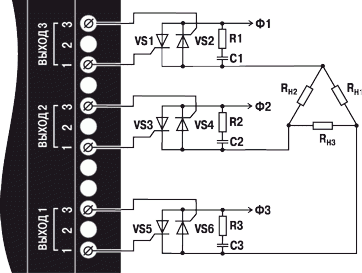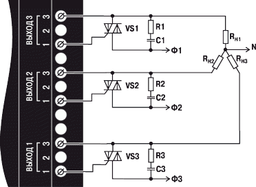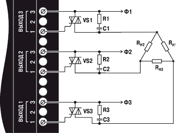Позволяет регулятору, не имеющему выхода «С3», управлять трехфазной нагрузкой.