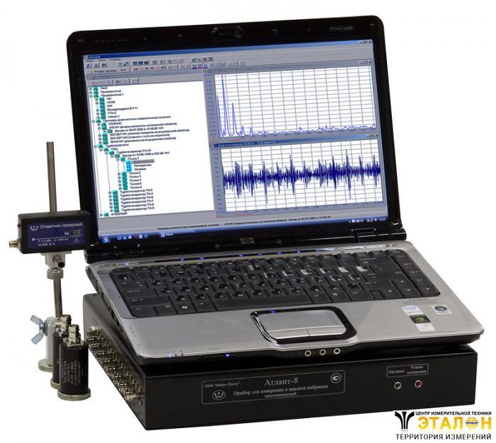 Основу прибора регистрации вибросигналов «Атлант» составляют внешний измерительный блок с первичными датчиками и персональный компьютер любого исполнения (для переносного прибора обычно это ноутбук). В персональном компьютере объединены функции регистрации вибрационных сигналов, обработки, хранения, экспертной диагностики. Функции первичной обработки вибросигналов, фильтрации и синхронного цифрового преобразования реализуются во внешнем блоке. К этому блоку подключаются датчики вибрации, а также отметчик фазы, используемый при динамической балансировке роторов в собственных опорах.