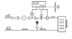 Схема системы регулирования температуры смешанной воды в отоплении