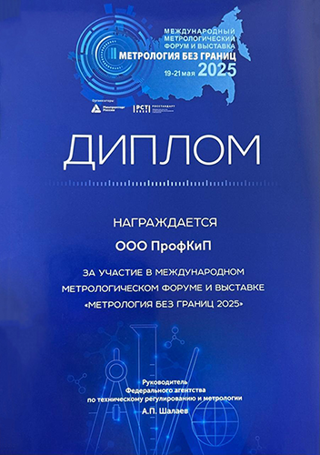 Рады сообщить, что бренд «ПрофКип», официальным дистрибьютором которого мы являемся, получил диплом участника Международного метрологического форума и выставки «Метрология без границ-2025».